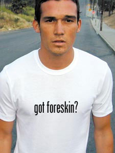 GOT FORESKIN? Professionally silkscreened onto an American Apparel 100% cotton T-shirt. Only $15. Click to order. |